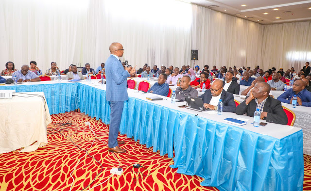 Mkurugenzi wa Uendeshaji Mfuko wa Hifadhi ya Jamii kwa Watumishi wa Umma (PSSSF), Bw. Mbaruku Magawa akiwasilisha mada kuhusu Kanuni mpya ya mafao ya pensheni iliyoanza kutumika Julai 1, 2022 wakati wa semina hiyo.