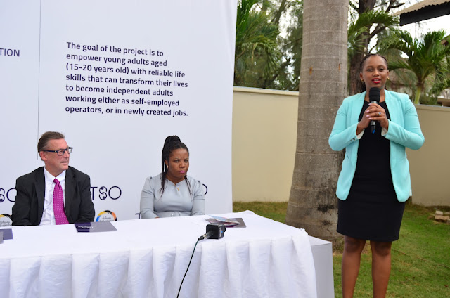 Mkurugenzi wa taasisi isiyo ya kiserikali ya Tanzanite Support Organization(TSO), Bahati Chando akizungumza wakati wa uzinduzi wa Taasisi ya kuwapa ujuzi watoto yatima waliofikisha miaka 18 na kuendelea ili waweze kujitegemea wenyewe watokapo katika Vituo vya kulelea watoto yatima. Kulia ni Mkurugenzi wa LCC Solution Tz, Martin Brack na Kushoto ni Mkurugenzi wa kampuni ya Mind Garden Psychological Firm, Sumaiya Mahmoud.