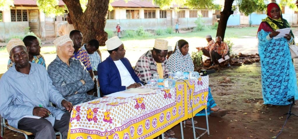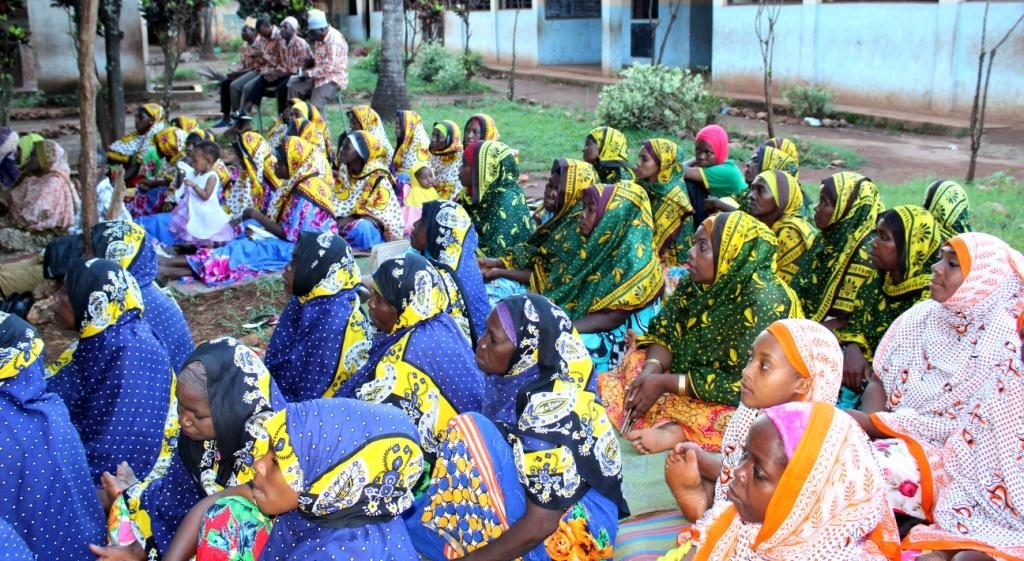 Baadhi ya Wanavikundi vya Ujasiriamali vya kuweka na kukopa vya shehia ya Ng’anani na Kajegwa Makunduchi Wakimsikiliza Mwakilishi wa Jimbo la Makunduchi Haroun Ali Suleiman huko Skuli ya Msingi Kajegwa Makunduchi.