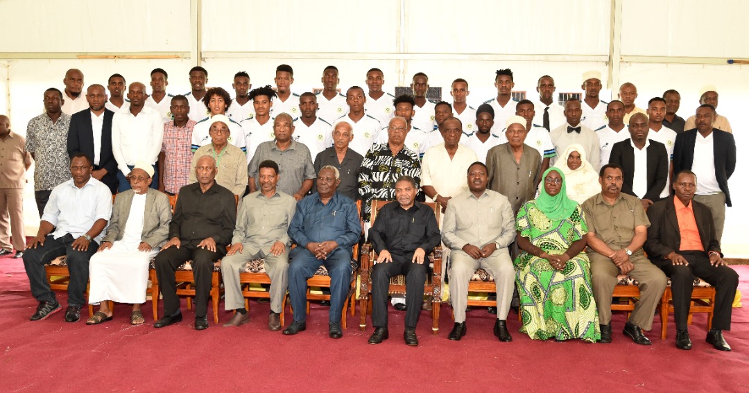 akiwa katika picha ya pamoja na Wachezaji wa Timu ya Taifa ya Zanzibar